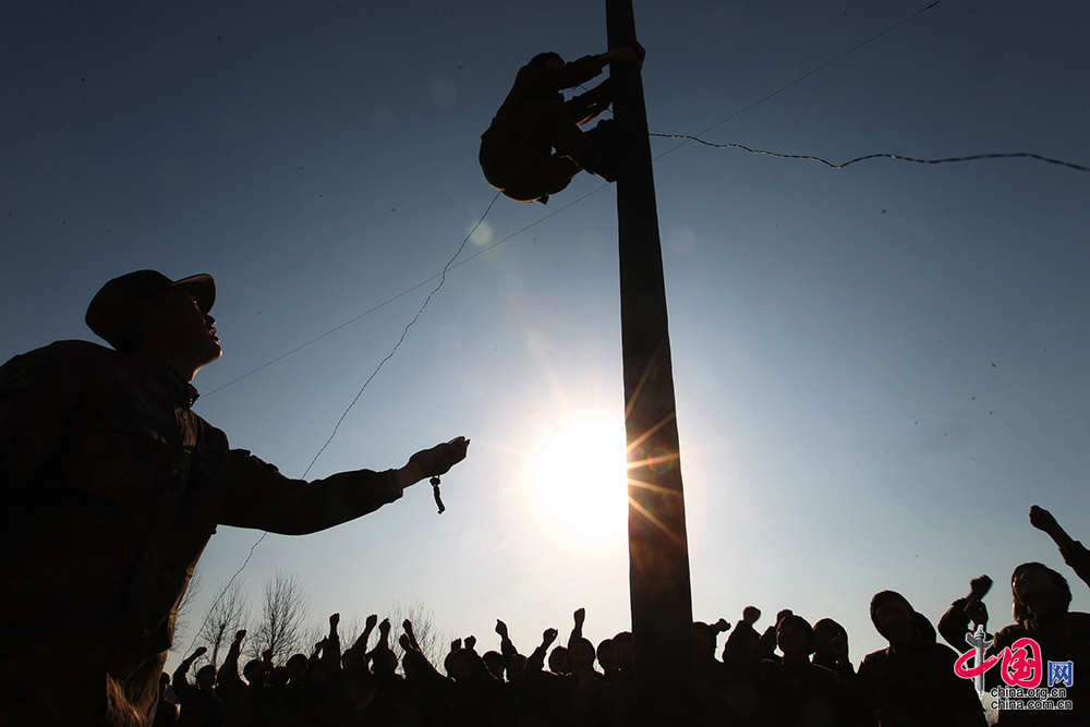 有一天,连长对大家说,团里有个活动叫创破纪录比武,有意愿的可以报名参加。听说比武,当时杨叶就毫不犹豫地报了名。杨叶报的专业是爬杆和卫星。当时外训点没有爬杆专业训练器材,为了杨叶能练这个课目。连长刘东泉还带着一些人到驻训点的乡村协调,借用村里的电线杆。杨叶说,我记得,刘连长带领战友挖了一天才把杆挖回来,挖回的杆子上泥很多,他们又拿着自己的鞋刷把杆上的泥巴一点点刷掉,然后全连的男兵战友又在院子里挖坑,把它埋到院子里让我训练。我当时想,一定要对得起大家给我挖的这两根杆。爬杆训练的时候,起初很不顺利,我手上和大腿两侧常常会扎刺,杆上的倒刺就扎到肉里面去了,扎到里面,班长帮我拔出来,再爬,再扎进去,再拔出来。我都数不清自己被扎了多少次。练了三个多月,2014年9月份中旬,比武开始。考核那天,爬到4米多高的杆子之上打结,我们仅用58秒完成;宽带天线架设,从一开始的两分多练到了考核时的二十多秒。当时,我都不敢相信自己能考这么好,一些男兵听到后,都觉得很惊讶,都说:“哇塞,好牛啊!”年底,杨叶被评为连队的“优秀士兵”、“优秀共青团员”。
