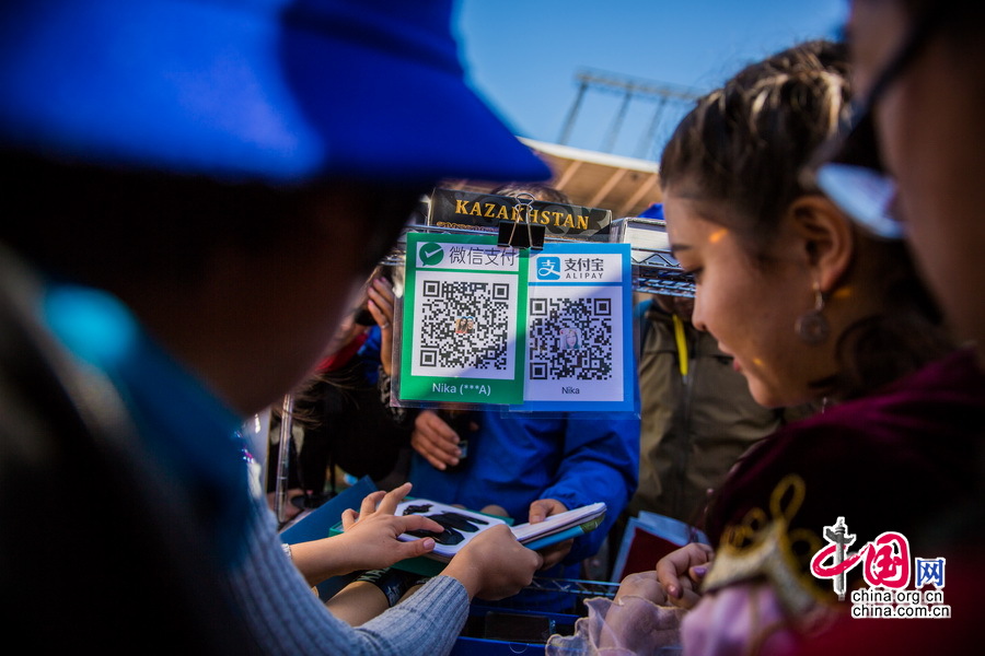 各个驻华使馆的摊位上均有市民熟悉的手机支付二维码。中国网记者 郑亮摄