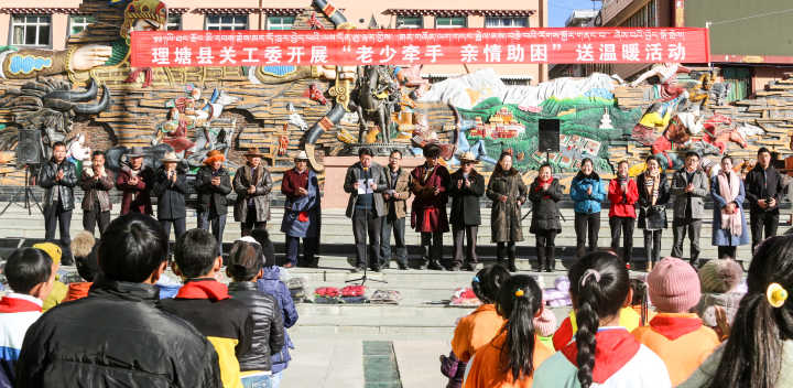 12月8日,理塘县在格萨尔广场举行“老少牵手,亲情助困”送温暖活动,143名孤残贫困儿童领到过冬衣物。
