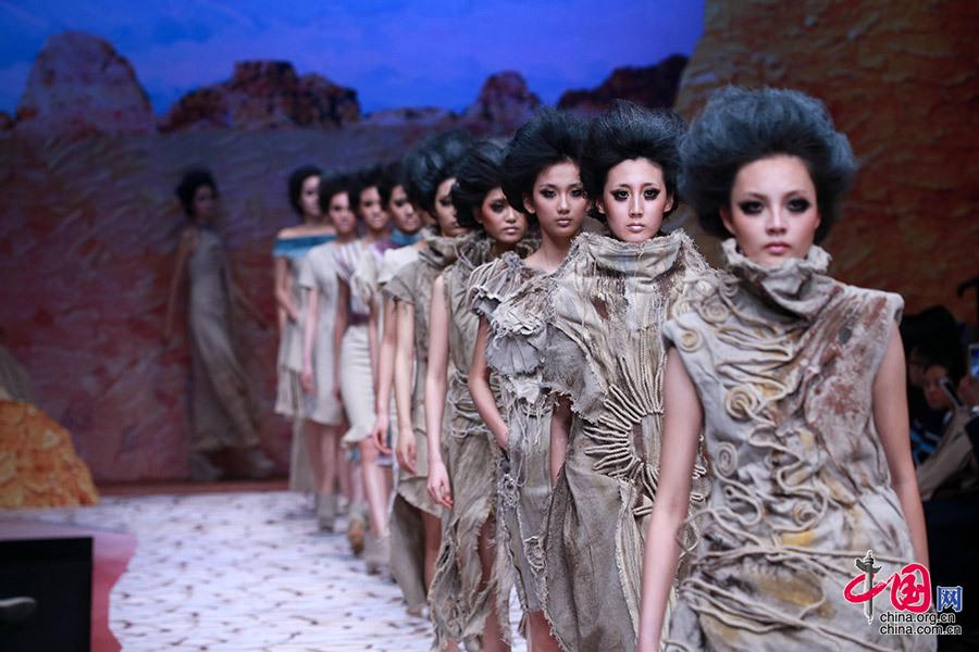 本次发布会设计师带来了《雅丹•垚》,亘古的荒原中呈现出雅丹,是被风雕琢的一座座雕像,就像上帝之手经过深邃的思虑,无数次的打磨让他们以苍茫粗犷的神态,孤寂而骄傲的呈现在人们的眼前,一如我们的灵魂经历人生数次淬炼而浴火重生……