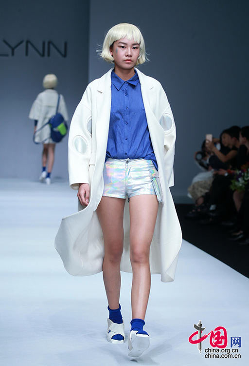2016年3月28日,模特在梅赛德斯-奔驰中国国际时装周(2016春夏系列)上展示李少文设计的时装作品。陈健男 摄