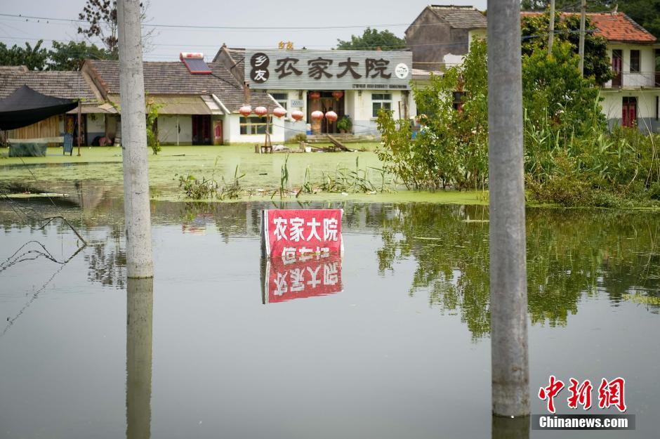 7月13日,安徽合肥肥东长临河镇内的积水仍旧很高。七月以来,安徽暴雨袭击,多地遭遇洪涝灾害,近几日虽有晴好天气“缓冲”,但因长江水位较高,内河依旧无法实现泄洪,安徽多个灾涝地区的水迟迟不能退去。中新社记者张娅子 摄