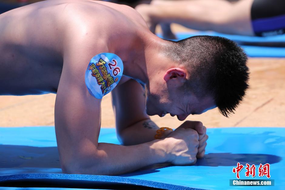 帅哥美女齐聚江苏溧阳天目湖 顶烈日挑战“平板撑”