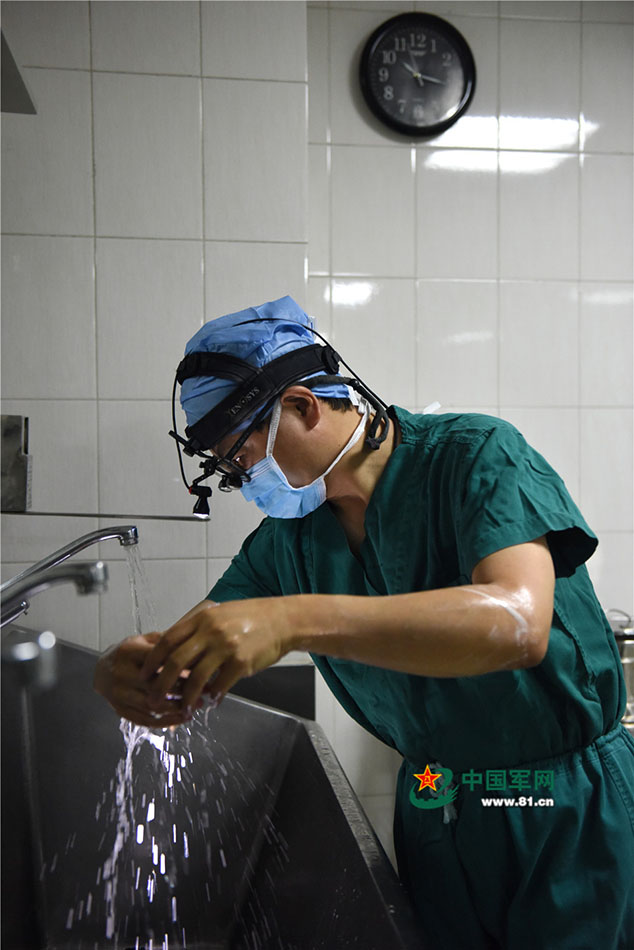 医生严格按规定流程进行术前准备。记者范显海摄影