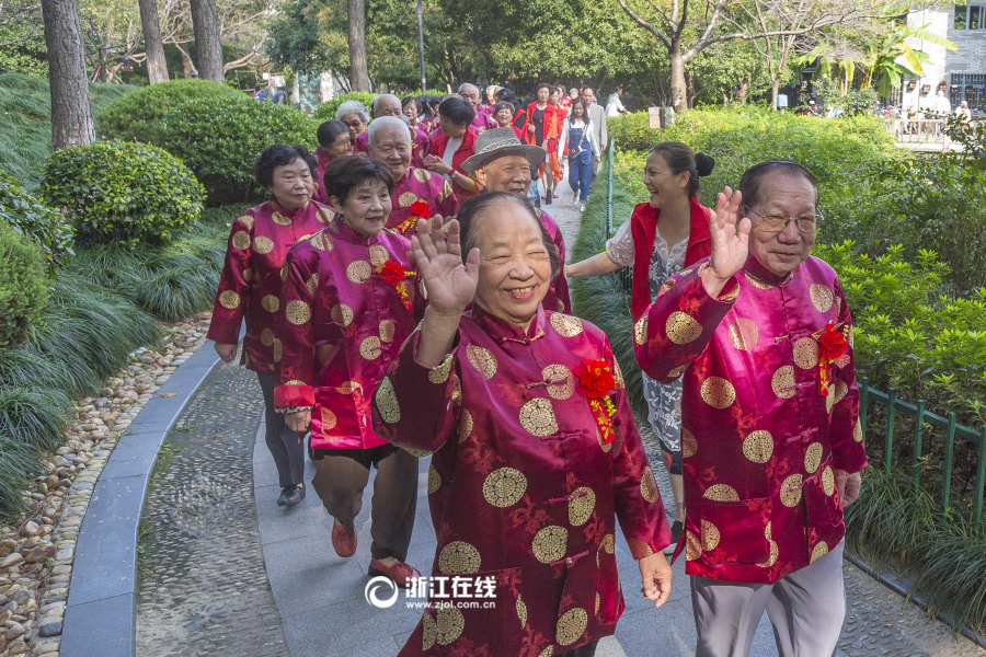 重阳节杭州36对老人共贺金婚