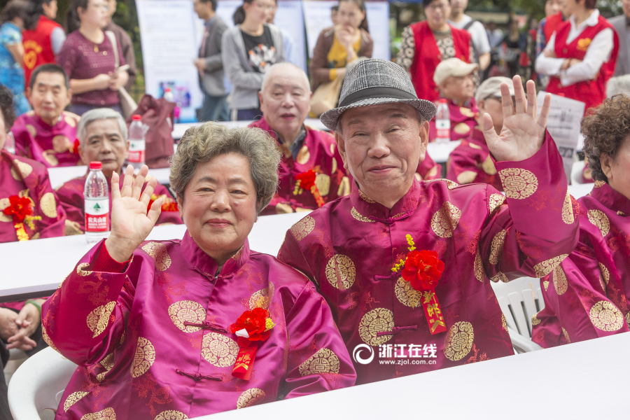 重阳节杭州36对老人共贺金婚
