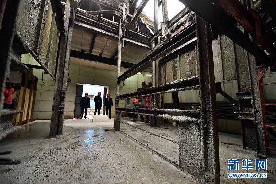 在石圪节煤矿,工作人员查看南副井封闭情况(10月20日摄)。