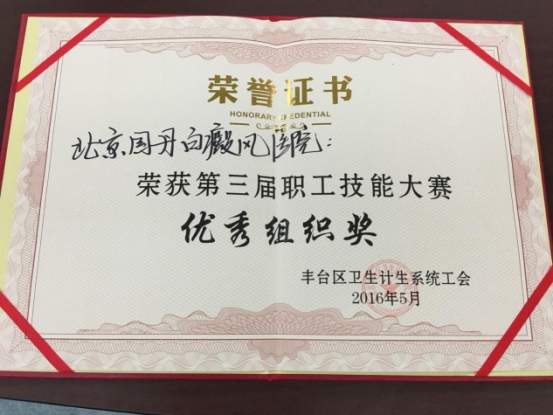 2016年5月,在由北京市丰台区卫生计生系统工会、团委主办,丰台区医学会、医院协会协办卫生计生系统职工技能大赛暨“青年岗位能手”评比中,经过各单位预赛、笔试和现场操作等程序后,北京国丹白癜风医院是在42个代表队中脱颖而出,加冕“优秀组织”。