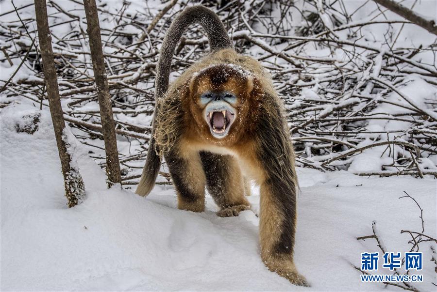 1月10日,在湖北省神农架大龙潭金丝猴保护基地,一只金丝猴在树林中行走。经过动物保护人员的多年努力,加之生态环境的不断改善,湖北省神农架金丝猴得到有效保护。目前,神农架金丝猴数量比20世纪80年代最少时增加了一倍多。新华社记者杜华举 摄