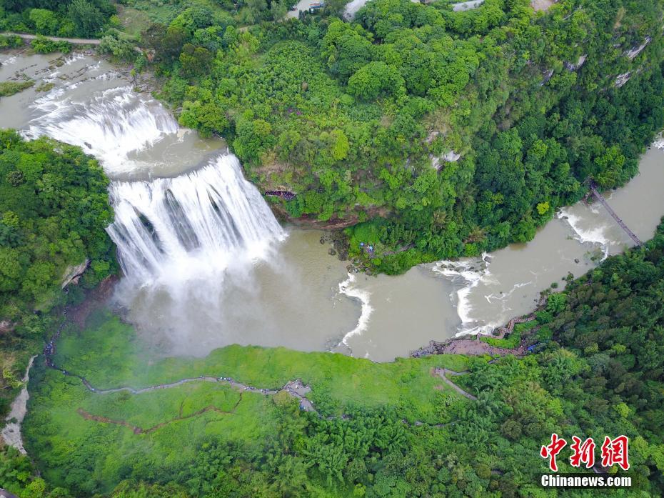 受强降雨影响,位于贵州省安顺市的黄果树瀑布进入丰水期。 中新社记者 贺俊怡 摄