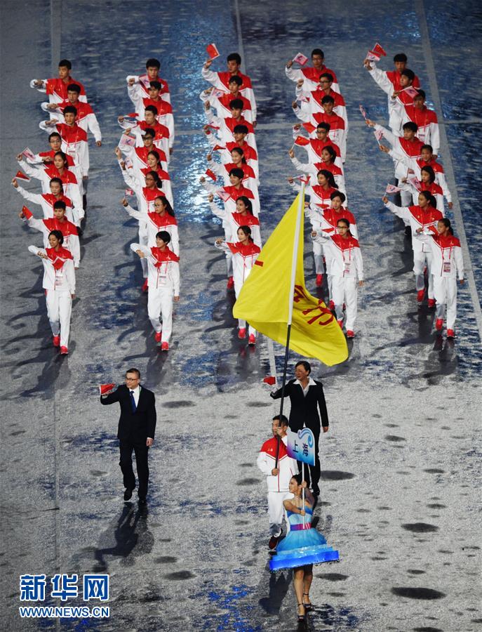 8月27日,第十三届全国运动会开幕式在天津奥林匹克中心体育场举行。 这是上海体育代表团进入开幕式现场。 新华社记者鞠焕宗摄