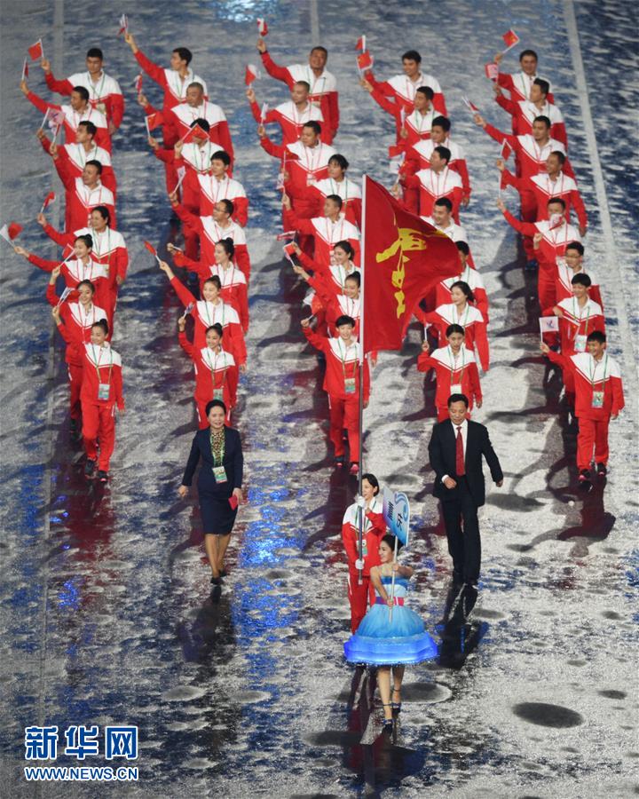 8月27日,第十三届全国运动会开幕式在天津奥林匹克中心体育场举行。 这是重庆体育代表团进入开幕式现场。 新华社记者鞠焕宗摄