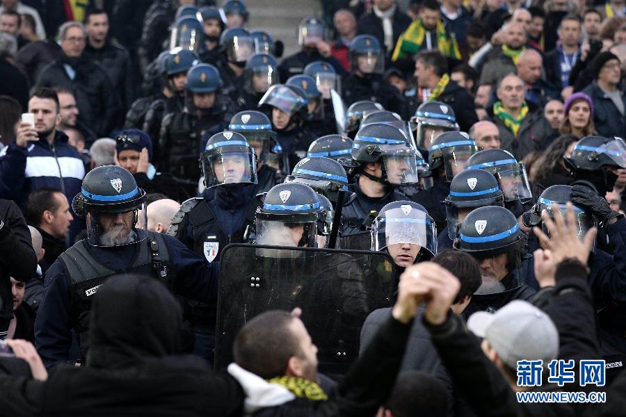 法甲赛场发生骚乱 球迷与警察冲突[组图]