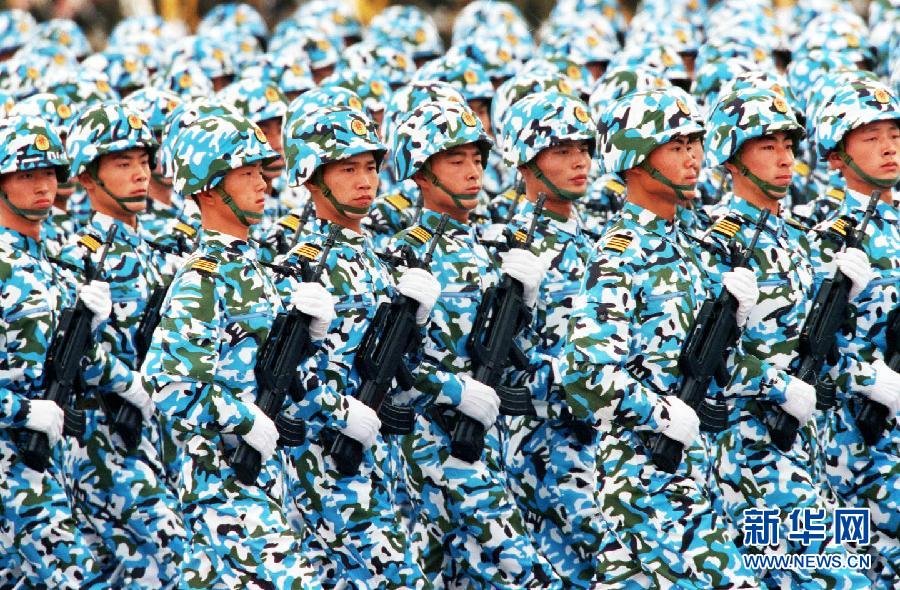 这是1999年国庆阅兵式上的海军陆战队方队。 新华社记者罗更前摄(资料照片)"