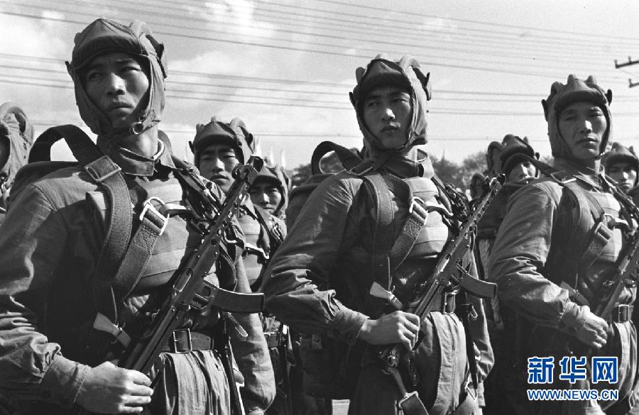 这是1953年国庆阅兵式上的中国人民解放军伞兵部队。 新华社记者许颖摄(资料照片)"