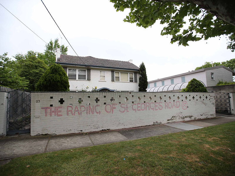 有人在马路正对面的墙上画上愤怒表情并用红色喷漆写道:“圣乔治大街正遭受凌辱。”