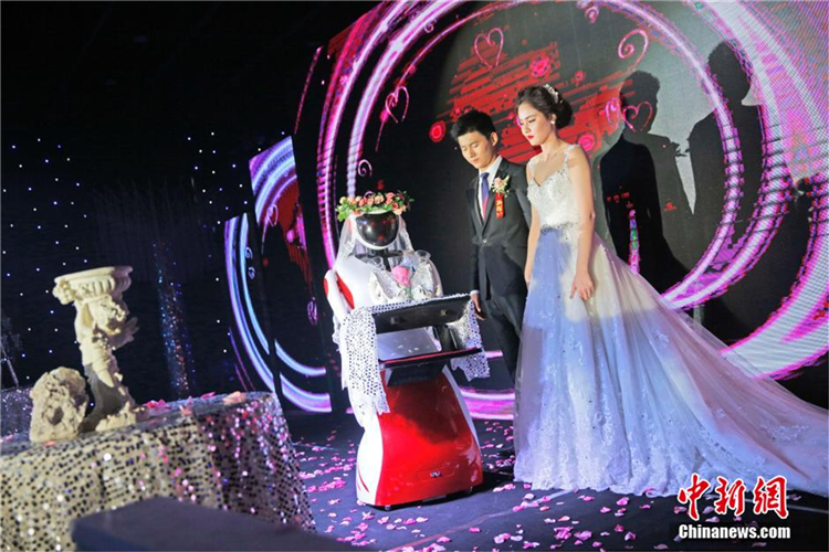 11月1日,在天津的一场婚礼上,一台名为“昊越”的机器人担任了“伴娘”的角色,见证了一对新人的幸福时刻。