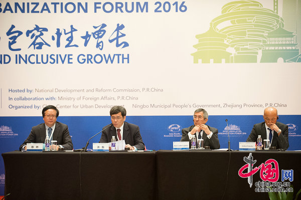 6月2日中午,正在宁波举行的“APEC城镇化高层论坛2016”发布了《APEC城镇化高层论坛2016宁波倡议》,提出了八项倡议内容,图为外交部经济司副司长、APEC高官谈践发言。国家发改委供图