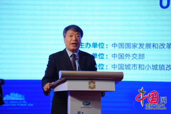 6月2日,“亚太经合组织(APEC)城镇化高层论坛2016”今日在宁波开幕。图为国家发改委主任徐绍史作主旨演讲。国家发改委供图