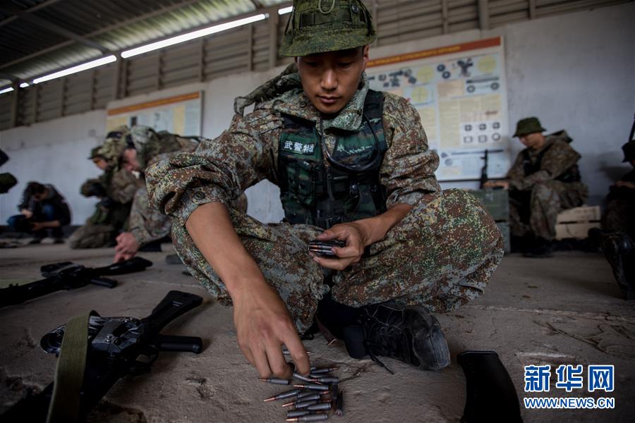 7月6日,在俄罗斯莫斯科,一名中国参训队员在训练中装弹。