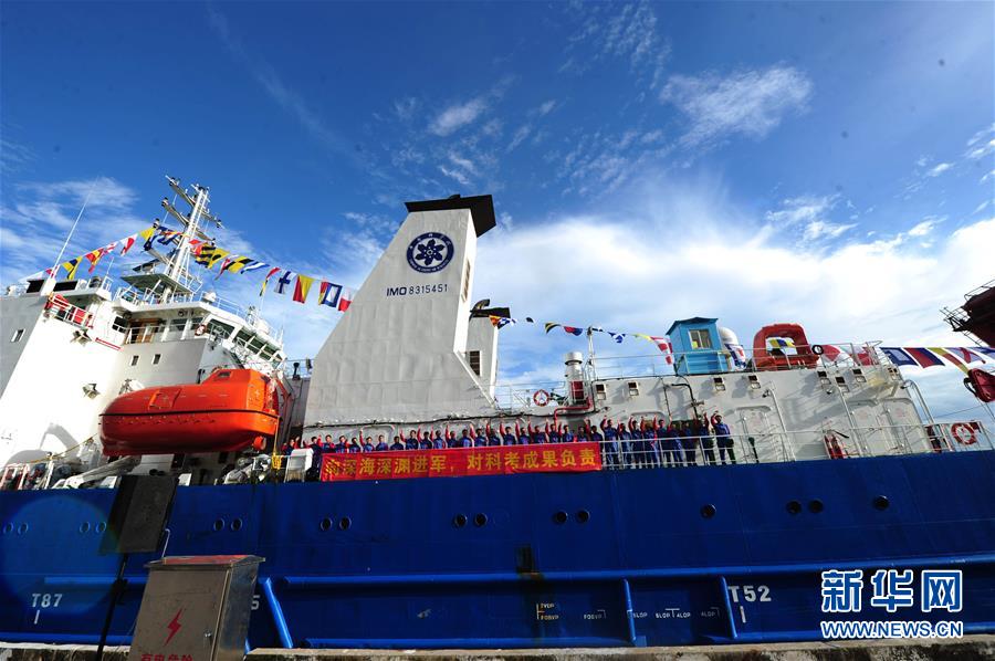 当日上午,中国4500米载人潜水器及万米深潜作业的工作母船“探索一号”科考船首航归来,返回三亚母港。“探索一号”于6月22日从三亚出发执行科考任务,取得一大批珍贵的样品和数据。