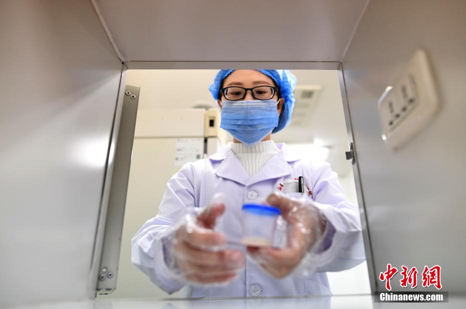 11月17日,山西太原,山西省人类精子库医务人员通过传递窗将精液拿回实验室分析筛查。山西省人口计生委科学研究所下属的人类精子库,自从2006年成为中国第五个正式运行的人类精子库后,10年间,这一神秘场所由刚开始的不为人所知,发展到现在的捐精者络绎不绝,帮助诸多不育不孕家庭实现了做父母的梦想。韦亮 摄