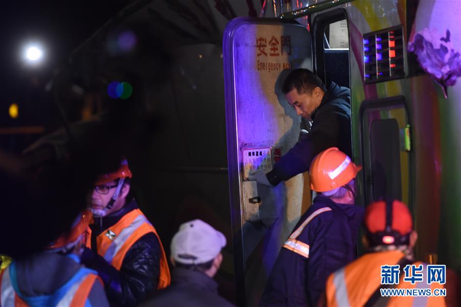 2月14日,工作人员在事故车辆旁执勤。据台湾消防部门2月14日消息,13日晚发生的台湾游览车翻车事故已造成33人死亡、11人受伤。 13日21时6分许,在台湾公路主干道5号南港系统交流道接3号南下路段,台北市蝶恋花旅行社一辆游览车翻覆于引道边坡,车内共44人(游客42人,导游、司机各1人),没有大陆游客。新华社记者欧东衢 摄