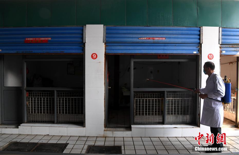 2月16日,安徽合肥王卫社区卫生防疫工作人员对活禽市场进行喷洒消毒药水消毒。安徽省卫计委14日发布信息称,安徽省目前H7N9流感发病仍呈上升趋势,已致20人死亡。安徽多地关闭活禽交易市场。中新社记者 韩苏原 摄