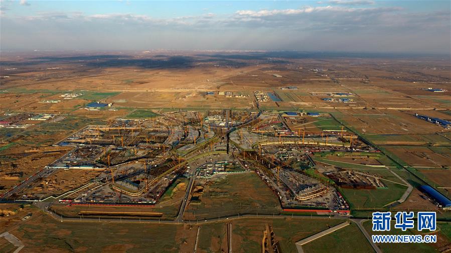 北京新机场建设工地航拍图(2月25日摄)。北京新机场位于北京市大兴区榆垡镇、礼贤镇和河北廊坊市广阳区之间,定位为大型国际航空枢纽,规划建设7条跑道,满足年旅客吞吐量1亿人次需求。新机场于2014年开工建设,计划2019年建成并投入运营。目前,北京新机场主航站楼已实现主体结构封顶,部分屋面钢架结构已在吊装。飞行区工程、场内交通市政工程全面开建,航空公司基地、空管工程、口岸设施建设等正在稳步推进中。新华社记者罗晓光 摄