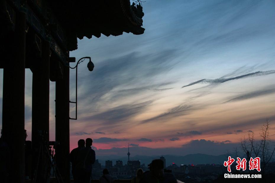 2月28日傍晚,北京的天空迎来绚丽晚霞,放眼望去,令人格外舒畅。中新社记者 泱波 摄