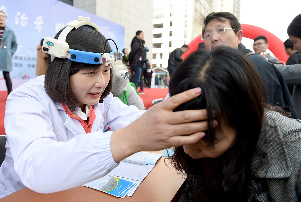 3月3日是全国爱耳日。安徽省医疗卫生部门联合省内多家医院的医生来到安徽省立医院前开展学雷锋、诊耳病义诊活动。新华社记者 郭晨摄