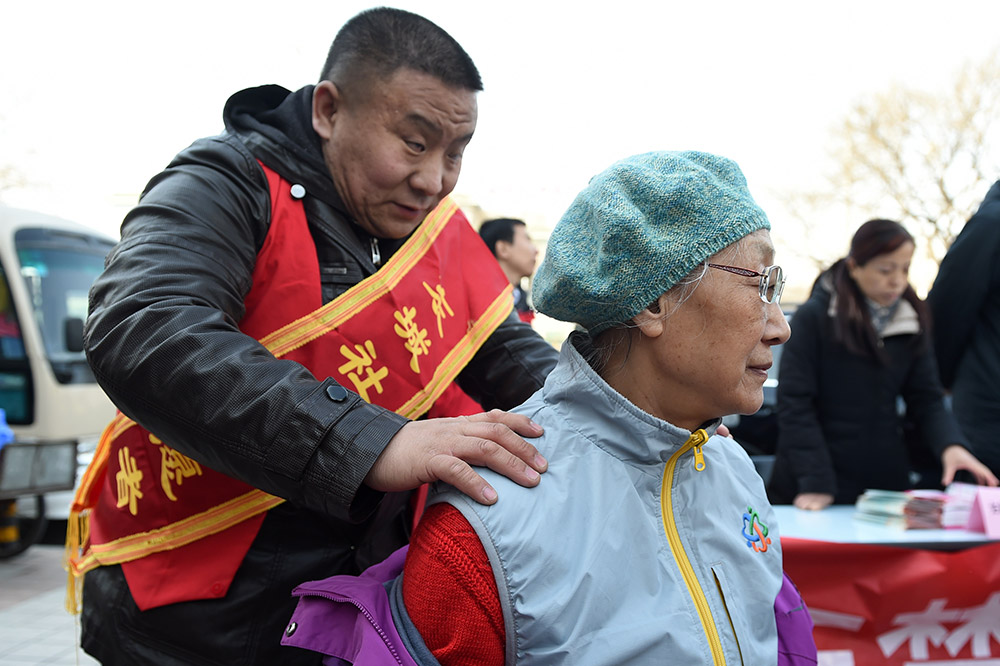 3月3日,北京市东城区东华门街道组织40多名志愿者,在辖区街头开展医疗义诊、修鞋修车、家电维修等学雷锋志愿服务活动,为社会居民提供便利。新华社记者鞠焕宗 摄
