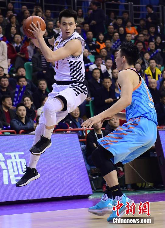 3月17日晚,辽宁本溪,2016-2017赛季中国男子篮球职业联赛(CBA)半决赛第四场比赛,辽宁本钢队(白)主场最后4秒上演争议绝杀,以109比107战胜新疆喀什古城队,总比分1比3落后。中新社记者 于海洋 摄