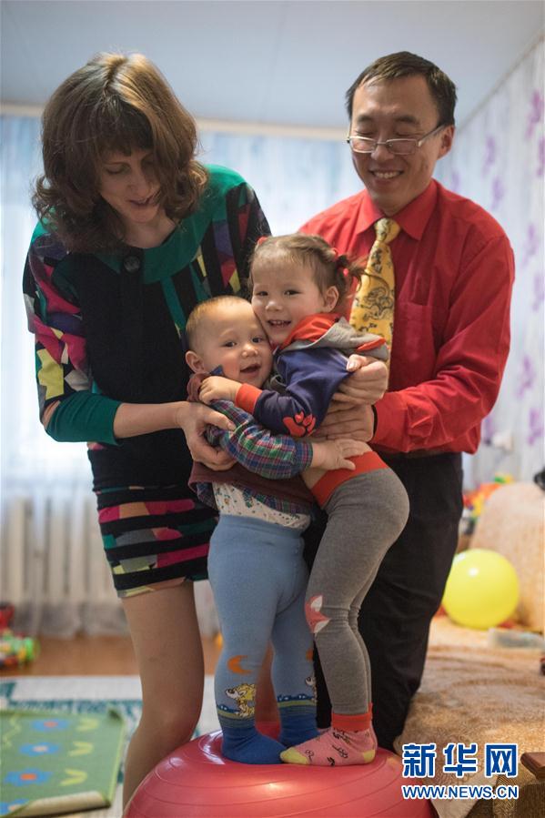 2017年4月16日,在白俄罗斯明斯克,黄少衡一家人在家中玩耍。