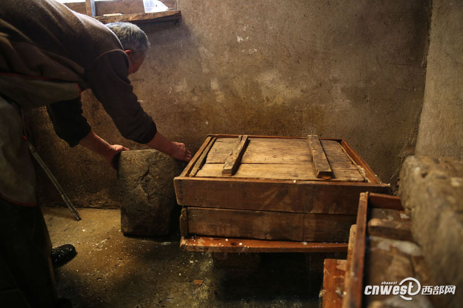上面盖上木板,再用100多斤的石头压好。等到豆腐不老又不嫩的时候,揭开木板和豆腐包,豆腐就做成了。这样的传统豆腐2.5元1斤。