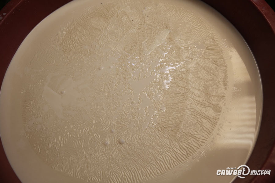 煮好的豆浆结了一层豆油皮。