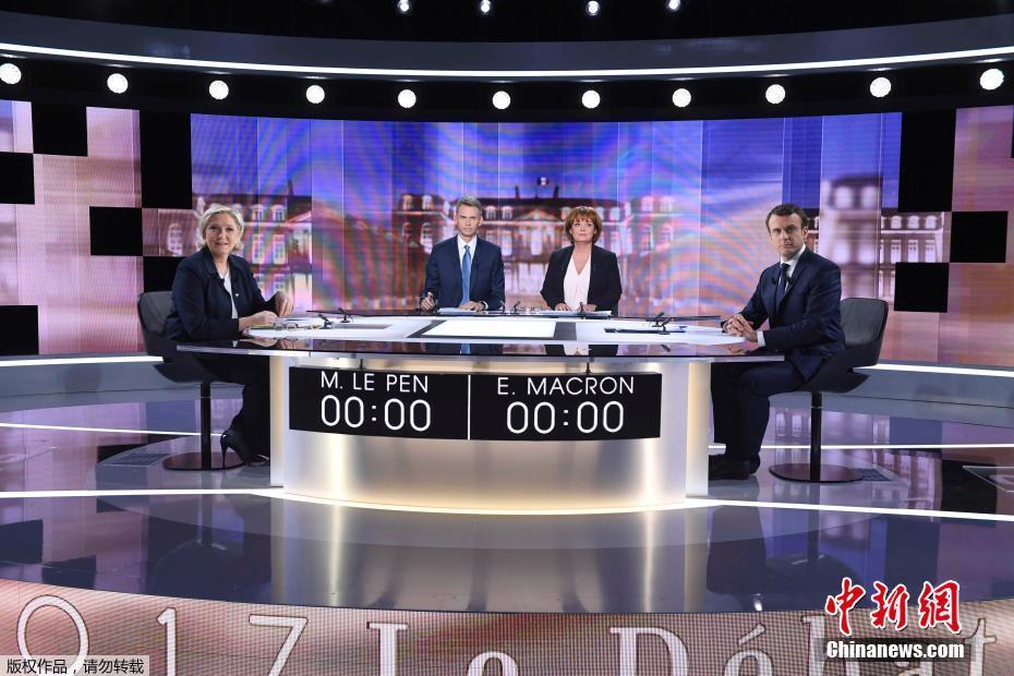 法国大选第二轮投票在即 马克龙勒庞开展电视辩论[组图]