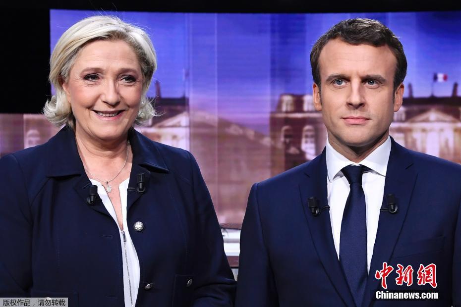 法国大选第二轮投票在即 马克龙勒庞开展电视辩论[组图]