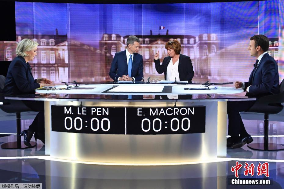 法国大选第二轮投票在即 马克龙勒庞开展电视辩论[组图]