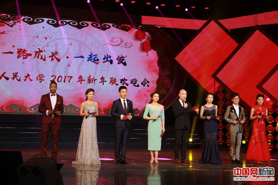 中国人民大学2017年新年联欢晚会的主持人阵容。中国网记者 张艳玲 摄
