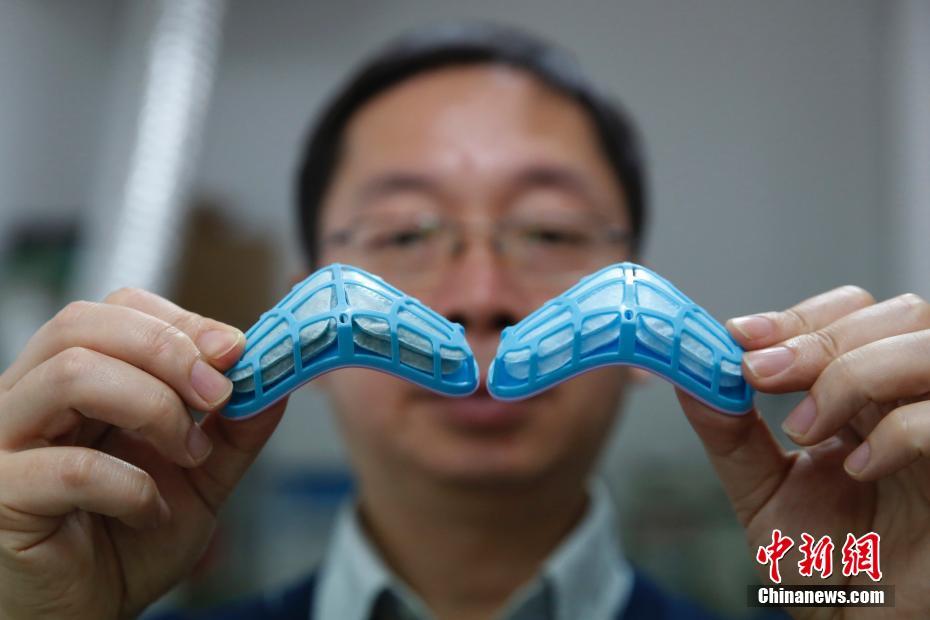 1月3日,北京化工大学高分子纳米复合材料实验室刘勇教授通过台式扫描电子显微镜,观察近期使用后的防霾鼻罩滤芯上采集的雾霾颗粒,以及分析雾霾颗粒里面含有的各种元素。近日,北京持续雾霾天气。图为刘勇教授展示使用前后鼻罩滤芯。中新社记者韩海丹 摄