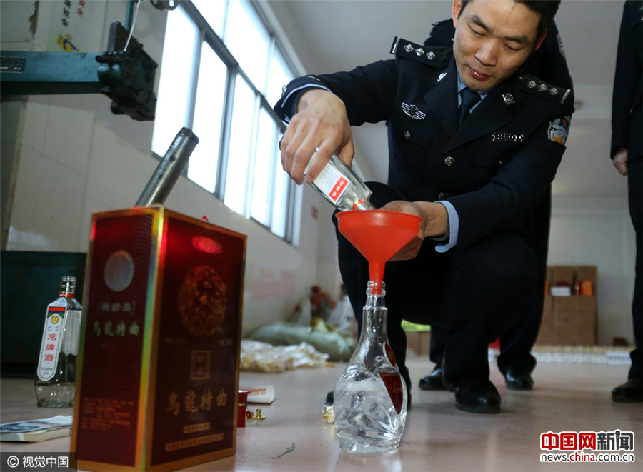 现场查获的大量假酒和制假设备。凯撒/视觉中国