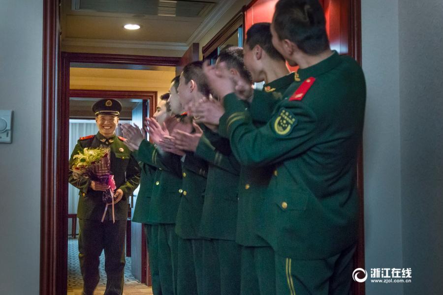 这场特殊的婚礼中,没有豪华的宴席,没有考究的装饰,但却载满了兄弟战友的祝福。浙江在线记者 倪雁强 摄 图片来源:浙江在线