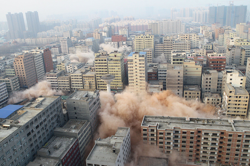 郑州最大城中村爆破 大楼轰然倒塌