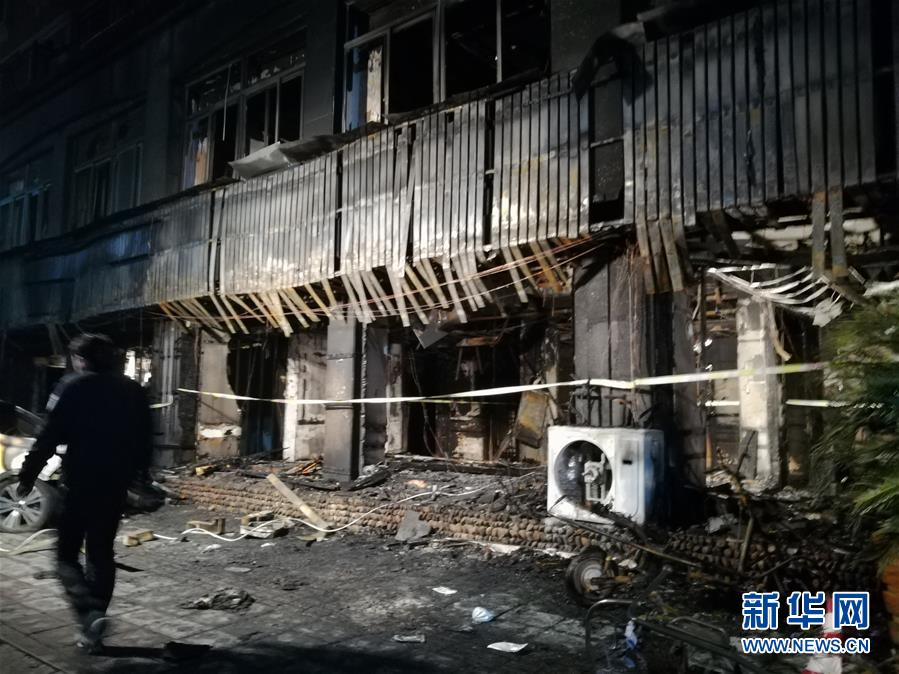 这是2月6日拍摄的发生火灾的浙江省天台县赤城街道春晓堤足馨堂。新华社记者 王俊禄 摄