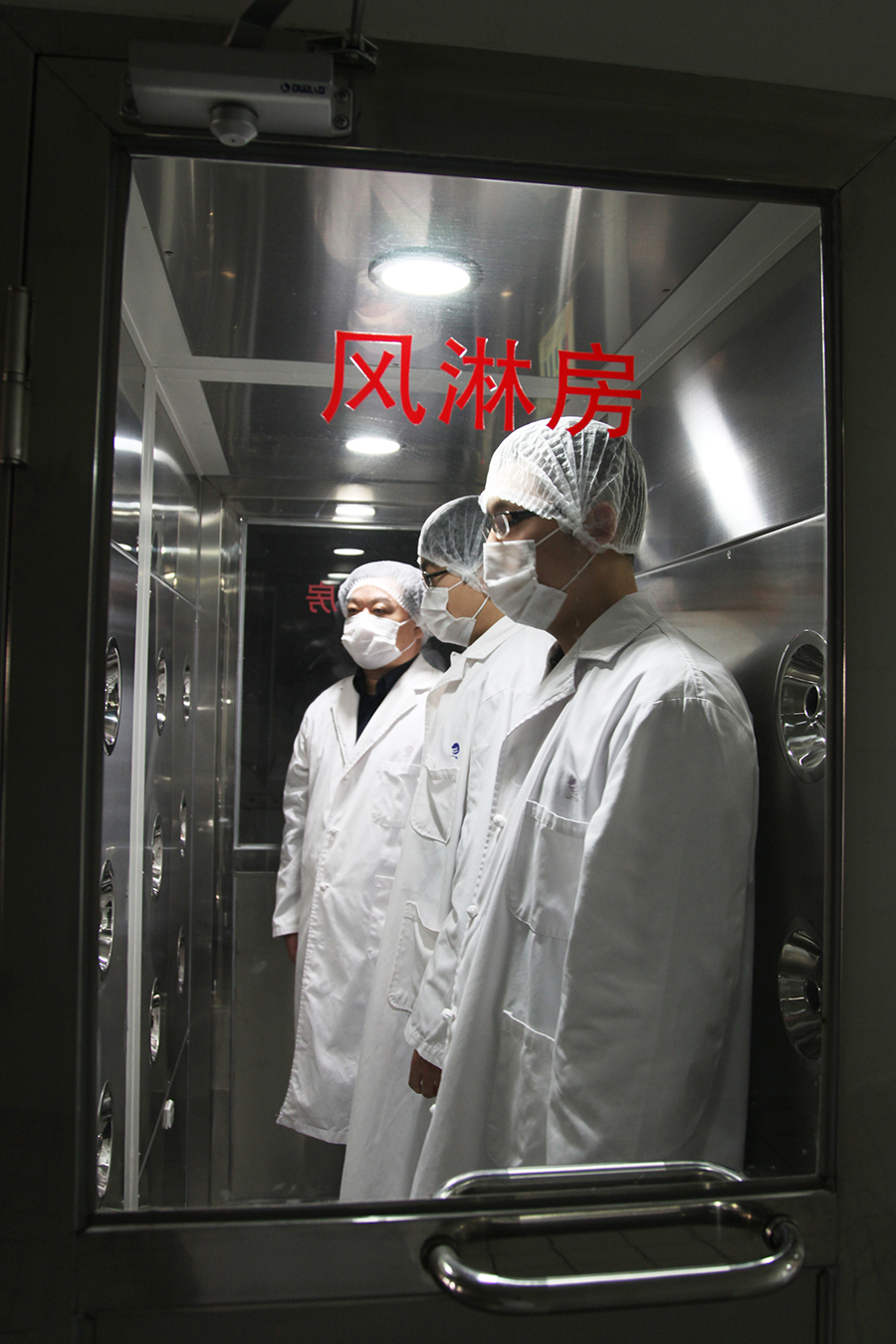 进入食品生产区之前,必须在风淋房进行消毒。中国网记者 陈维松 摄