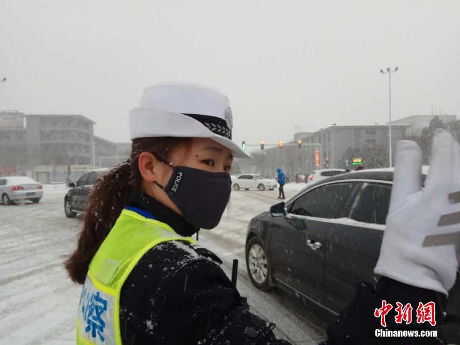 2月21日,山西太原迎来入春降雪,当地气象台发布暴雪黄色预警,多条高速公路封闭。在山西省忻州市,当地交警全警上路应对大雪天气,加强路面巡逻管控,保障群众出行安全。刘小红摄