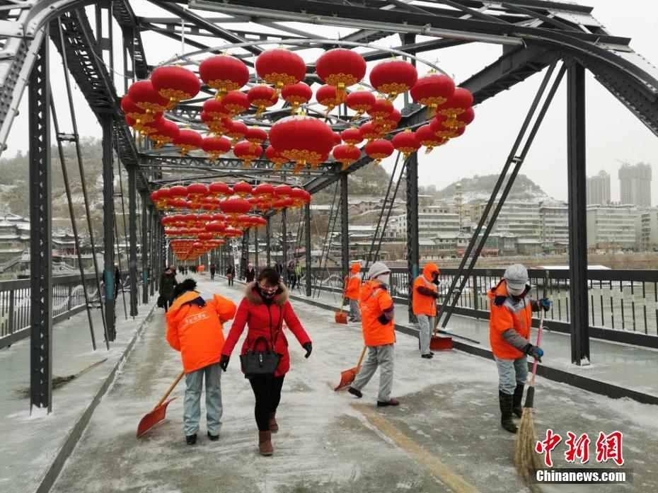 2月21日,初春时节,兰州降雪。当日8时52分,兰州中心气象台发布甘肃省暴雪蓝色预警。图为中山桥雪色。 杨艳敏 摄