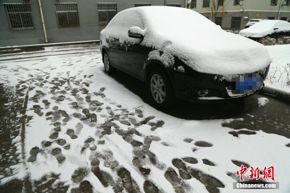 2月20日晚,甘肃多地遭遇降雪天气,“一夜返冬”。图为甘肃平凉居民小区内落满雪花。 郑兵 摄