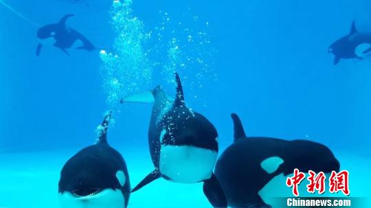 在珠海长隆“虎鲸繁育基地”,记者看到,已经移居这里1年至3年不等的9条虎鲸都显得十分活泼可爱,在巨大的水池中自由游动。光滑浑圆的体型、黑白分明的体色,灵活的小眼睛,使得身长几米、重达几吨的它们呈现“天然萌”。